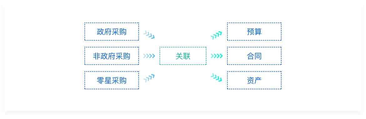 对单位政府采购和零星采购的过程管理,通过与财政预算指标相关联,明确采购资金预算。采购部门按照政采指标向财政申请用款计划。根据项目类型及项目金额系统自动按照单位规定的业务流程进行审核。并详细记录单位采购过程的评审意见、公示信息、采购方式、招标结果、中标信息及合同签订等信息。